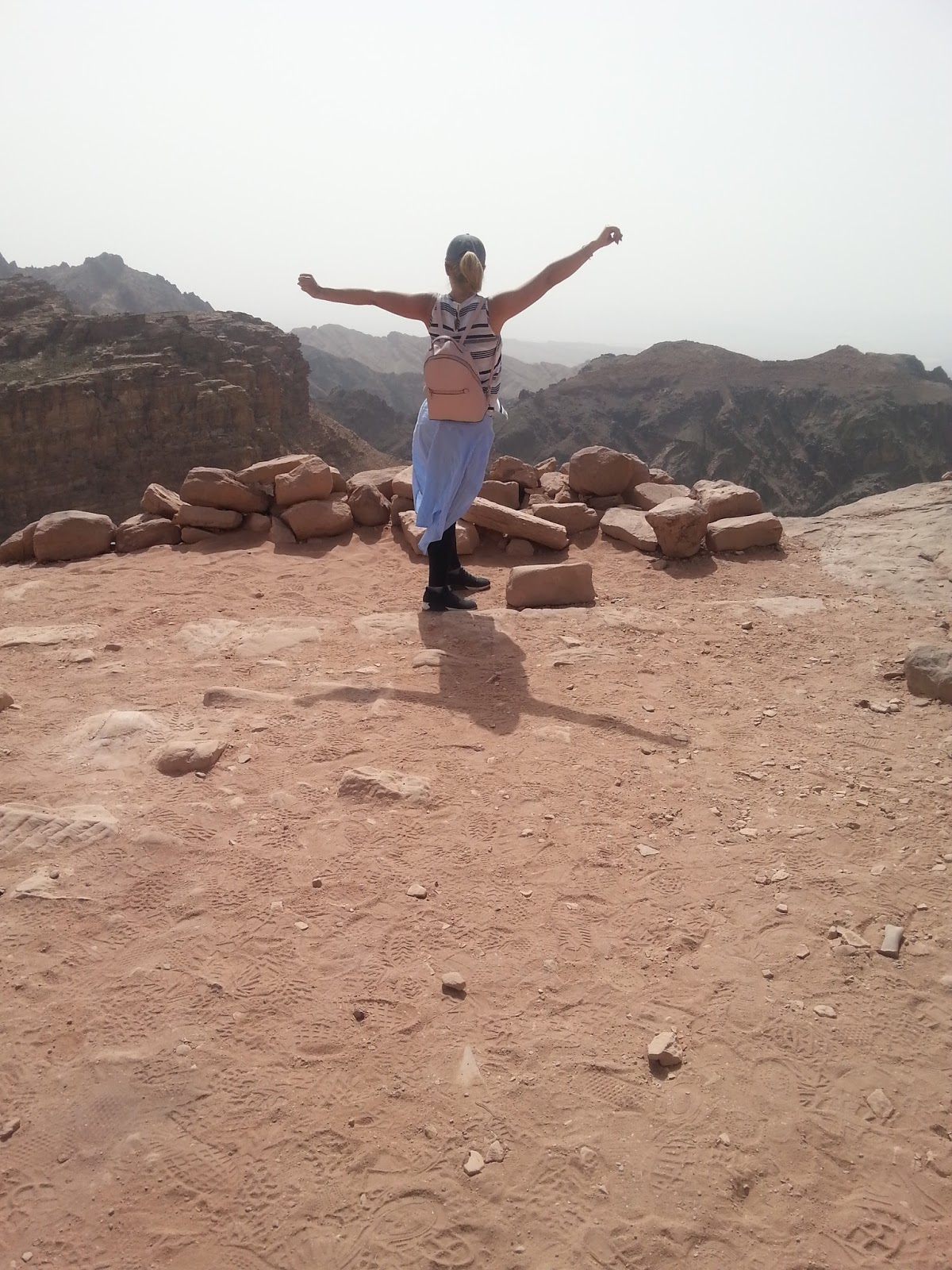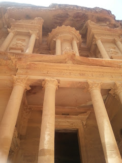 Τρίτη ημέρα, ξυπνήσαμε τα χαράματα για να πάμε στην αρχαία Πέτρα. Τέσσερις ώρες δρόμος από το Αμμάν. Στο αυτοκίνητο ο Νedal, μας πρότεινε να επιλέξουμε τραγούδια της αρεσκείας μας, από το youtube. Να είσαι δηλαδή, στην Ιορδανία, και οι συνταξιδιώτισσες να θυμούνται τα «ριάλια ριάλια τζαι πούντα». Χαλαρά, πέρασε η ώρα, και φθάσαμε στην Πέτρα. Ο οδηγός, μας συμβούλεψε να δούμε τη θέα των εντυπωσιακών ψηλών βουνών, όταν φθάσουμε στην πρώτη σημαία, γιατί είχε και άλλες στα επόμενα μονοπάτια και πρωτίστως για να μην ταλαιπωρηθούμε με το ατελείωτο περπάτημα.