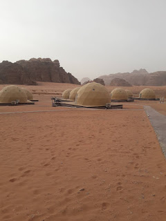 Το βράδυ, διανυκτερεύσαμε στο γνωστό κατασκηνωτικό χώρο Sun City Camp στο Wadi Rum. Μια απέραντη έρημος. Με το που πατήσαμε το πόδι μας εκεί, είχες την αίσθηση ότι βρισκόσουν στον πλανήτη Άρη. Η κόκκινη άμμος, σε συνδυασμό με τα στρογγυλά αντίσκηνα ξεχώριζαν για την πολυτελή εσωτερική κατασκευή τους και την εξωτερική διαστημική εμφάνιση τους.
