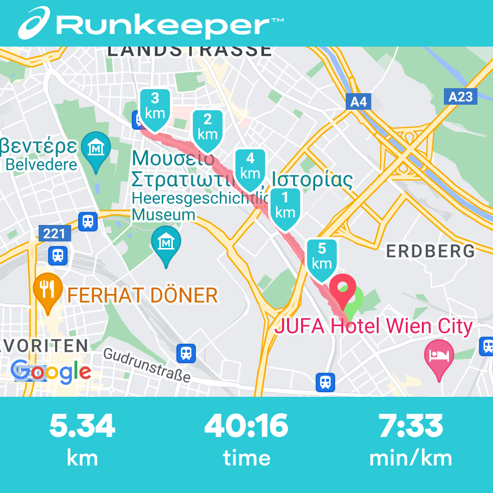 Το επόμενο πρωί, ολοταχώς για τρέξιμο. Τα πεζοδρόμια της Βιέννης, δεν έχουν ούτε ένα ψεγάδι, σε σχέση με τα πεζοδρόμια της Κύπρου, όπου φοβάσαι να τρέξεις μπας και σκονταψεις από τις κακοτεχνίες.