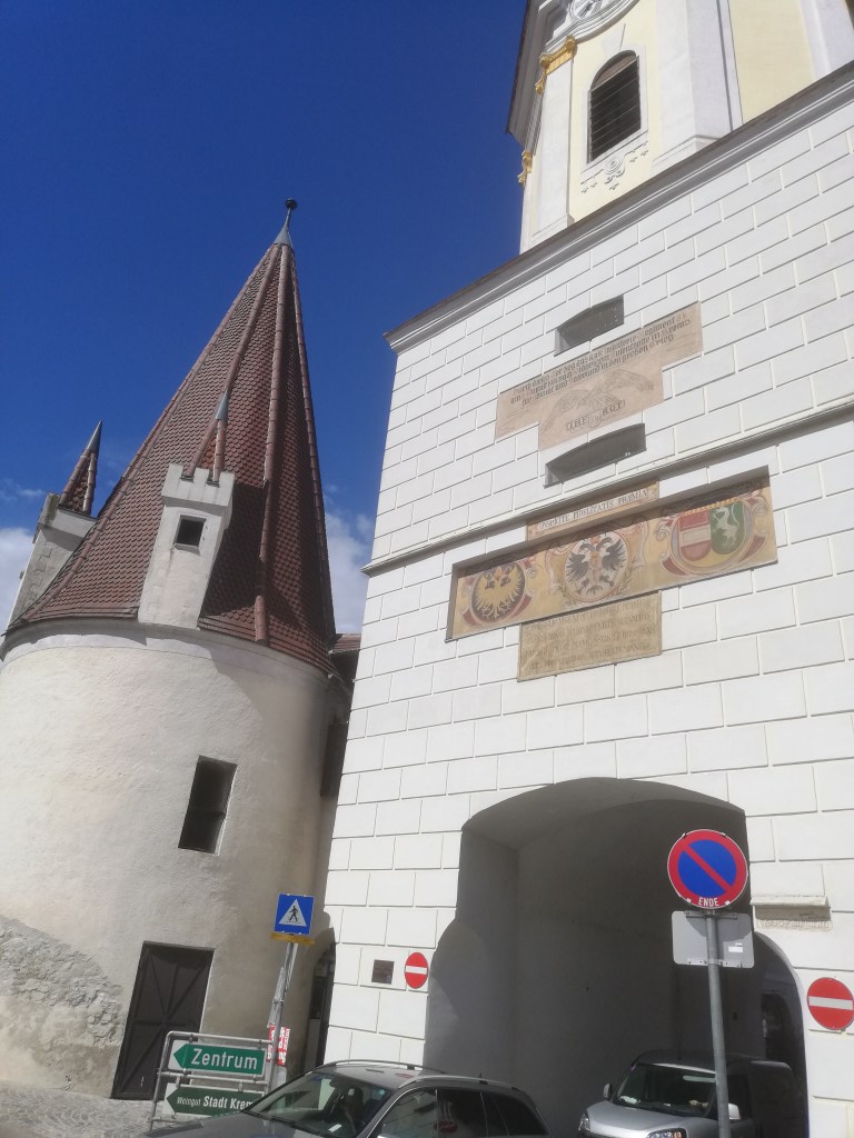 Μπαίνοντας στο χωριό Κρεμς, δεν προλάβαμε να δούμε, την γραφικότητα της περιοχής, μέσα στην πύλη, λόγω της έλλειψης του χρόνου, από το περπάτημα μας. Είχε ανέβει και η θερμοκρασια και ακολουθούσαμε τον ξεναγό μας, ο οποίος όπου έβρισκε ελληνικό στοιχείο, σταμάταγε επί τόπου, και μας μίλαγε για τις χρονολογιες και την ιστορία του τόπου. Νιώθαμε όπως τους φοιτητές, που μαθαίνουν απο ιστορία. Αφού είδαμε για λίγο την περιοχή, καθησαμε στην καφετέρια και ξεκούραστηκαμε, κάτω από τον ίσκιο των δέντρων. Εντύπωση μας έκανε, το ότι οι σερβιτόροι ήταν τα παιδιά της περιοχής που φόραγαν τις παραδοσιακές στολές τους. Μετά, φύγαμε από τη στάση των λεωφορείων, που υπήρχε εκεί στην πύλη του Κρεμς. Εμπειρίες. . 🙂